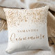 A pillow for a Quinceañera, 15th years old girls room. A chic white background with faux gold glitter dust. The text: Quinceañera is written with a large modern hand lettered style script. Personalise and add a name.