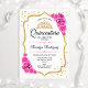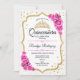 Quinceanera Party Invitation. Elegant design in white, pink and gold. Features script font, pink roses, tiara and confetti. Classy design with faux glitter gold foil. Perfect for a stylish glam celebration.