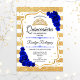 Quinceanera - White Gold Stripes Royal Blue Invitation