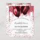 For an elegant Quinceañera, 15th birthday. A stylish white background. Decorated with red faux glitter and balloons. Personalize and add a name, age and party details. The name is written with a hand lettered style script