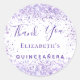 A chic white background. Decorated with violet, lavender coloured faux glitter, sparkles. Personalise and add a name and age.