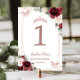 Quinceañera XV 16 Burgundy Blush Floral Rose Gold Table Number