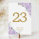 Quinceanera XV Purple Lilac Roses Floral Gold Table Number