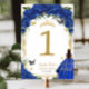 Quinceañera XV Royal Blue Floral Gold Girl Dress Table Number