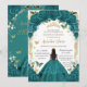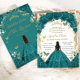 Quinceañera XV Teal Green Floral Princess Dress Invitation