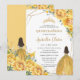 Quinceañera Yellow Floral Princess Crown Birthday Invitation