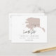 This travel themed save the date features a blush Alaska map and postcard backing. Easily change the colour of the map and move the heart around to highlight your destination.
