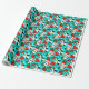 Quirky Black Dinosaurs and Poinsettias Christmas Wrapping Paper