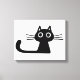 Quirky Black Kitty Cat Black and White Animal Art Canvas Print