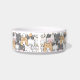 This charming cat bowl features an adorable and whimsical design of various cartoon cats in different colours and patterns, including grey, black, white, and orange. Each cat has a unique expression, and some are even wearing glasses, adding to the playful and fun aesthetic. The background is white, which makes the colourful cats stand out beautifully. It can be customised with your cat's name by clicking "Personalise this template."