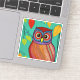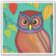 Cute red, blue, purple and brown quirky owl and leaves folk art style AI art.