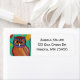 Cute red, blue, purple and brown quirky owl and leaves folk art style AI art.