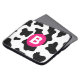 Quirky cool black and white cow spots pattern with bold hot pink monogram.