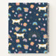 Cute navy blue notebook with a quirky dog and rainbow repeat pattern.