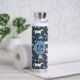 Quirky Cute Dog Rainbow Pattern Blue Personalised Water Bottle