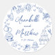 Quirky Hand Drawn Blue Whimsical Wedding Classic Round Sticker