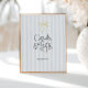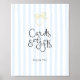 Whimsical handwritten bridal shower cards and gifts sign with a hand drawn lemon with a bow and soft blue watercolor stripes.