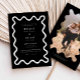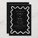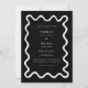 Simple and whimsical wedding invitation featuring hand drawn quirky line as a frame. You can add a photo on the back with the same wavy line. Black background.