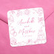 Quirky Hand Drawn Pink Whimsical Wedding Square Sticker