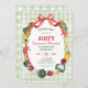 Quirky Hand Drawn Illustration Farmers Market Birthday Invitation, One Day Only Birthday Invite, Red Bow Girl Birthday