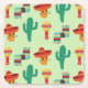 Quirky Mexican Cactus and Sombrero Pattern Square Paper Coaster