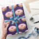 Quirky Pink Glazed Doughnuts Pattern Purple Wrapping Paper