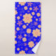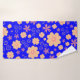 Quirky Retro Floral Pattern Bath Towel Set. A mix and match of cobalt blue colour with burgundy and black colour, perfect for those who are stylish and fashionable. Groovy, striking and vivid with the vintage orange colour flowers pattern.