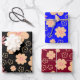 Quirky Retro Floral Pattern Wrapping Paper Sheets. The mix and match of black colour with cobalt blue and burgundy colour, perfect for those who are stylish and fashionable. Groovy, striking and vivid with the vintage orange colour flowers pattern.