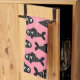 A fun and modern seamless block print style fish pattern featuring rows of black fishes on a soft pink background with occasional pops of pink tails. Ideal tea towel gift for lovers of marine life! Small scale. Available in other colors