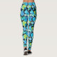 Quirky Turquoise Blue Neon Green Emerald on Black Leggings