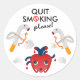Quit smoking, please. No matter how old you are or how long you’ve smoked, quitting can help you live longer and be healthier. To quit tobacco is a hard challenge. But it’s something every smoker should try at least once. If you tried to quit and succeeded, you can advocate for tobacco cessation with these products. You can use this product to spread the message around. Maybe it will help someone start a conversation with you about your experience. Maybe you can inspire someone, a complete stranger. Or maybe you want o to ask someone to quit smoking and don't know how. A simple gift might do the trick. Then, the person, a relative, a friend, a co-worker, or a fellow student must embrace the journey! You know, I know, quitting smoking is hard but it's a life-changing decision. This cartoon represents just one of the most popular and primary risk factors for heart disease: smoking cigarettes can permanently damage your heart and blood vessels. A nasty cigarette is armed with a bow and arrow. The impotent heart looks very distressed by the cigarette threat. We must help the poor heart, don't you think?