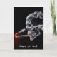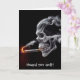 A wispy skull made from smoke emerges, gripping a lit cigarette between its teeth for someone who has quit smoking.