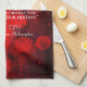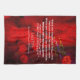 This Kitchen Towel features a quotation of Lao Tzu, ancient Chinese philosopher. The quote begins with our thoughts, and ends with our destiny, a lot to think about. The background is original abstract artwork by ZoeSPEAK of shapes in shades of rich reds and a splash of yellow, behind a pattern of raindrops.