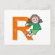 Illustration of a cute little cartoon girl climbing over a giant letter R. Image available on various gifts and products. Postcards.