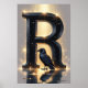 This glowing letter “R” artwork is designed to be calming, radiant, and full of quiet storybook wonder. The softly sculpted uppercase R glows from within, surrounded by a warm halo of ambient golden light and gentle sparkles that shimmer across a dark, magical backdrop. The glow is balanced to support visual comfort and emotional grounding in any learning or living space.