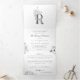 'R' Monogram Beautiful Sketched Floral Wedding Tri-Fold Invitation