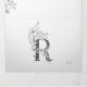 Letter 'R' Monogram Beautiful Sketched Floral Wedding Tri-Fold Invitation.