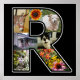 If you still need to make smaller adjustments, you can also "customise it." This is an elegant, modern personal piece of wall art for anyone with a first or last name starting with "R." The background is black with a white outline.