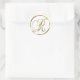 R Monogram Faux Gold Envelope Or Favour Seal. These classic round stickers are printed with non metallic ink on a flat sticker to look like gold. They are not beveled or embossed monograms but are designed to look like they are beveled or embossed monograms. These gold monogram seals are printed on a white background unless you select a different colour background before you proceed to checkout. In addition to being pretty wedding stationery supplies, these elegant wedding invitation envelope seals also make great monogrammed custom Christmas card seals, personalised holiday greeting card envelope seal stickers and customised Xmas card monogram seal stickers.