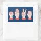 Picture of the hand gestures used in the popular game, "Rock, Paper, Scissors, Table Saw." With captions. T-shirts, sweats, cards, gifts.