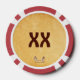 A Viking long ship with a red sail seen in profile from the right side and superimposed on an old paper background image. Customise by adding the chip value on the reverse side.