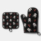 RAB Rockabilly Skulls and Cherries on Black Oven Mitt & Pot Holder Set