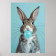 AI generated art of a rabbit blowing a blue bubblegum bubble