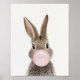 Rabbit blowing a pink bubble gum. Nursery art to decorate your child's room.