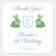Rabbit Blue Monogram Baby Boy 1st Birthday Favour Square Sticker