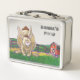 This is a standard metal lunchbox that appears to work just fine. We designed this box ourselves with an uploaded photo and custom text on the front and back. It looks absolutely beautiful except the front of the lunchbox is not centered like it shows in the photo. The print borders don't align with the inset flat part of the box where the preview photo online showed it perfectly centered in there. The back looks nice and centered though.