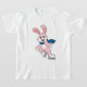 The t-shirt feels and looks great quality, a good thick cotton. It will be a little big for my son, but that means he will be able to wear it and not out grow it too soon. The print was as described on the order when personalised. True size, shape and colour T-shirt- thanks.
