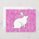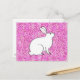 White bunny inspired by traditional Japanese rabbit designs, rendered in Illustrator, backed by a tiled design of pale pink and orchid spring flowers