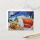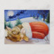 Rabbit Sleeps in Santa's Mitten Watercolor Art Postcard