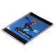 A young rabbit enjoys the thrill of snowboarding by showing off his moves down a steep snowy mountain.